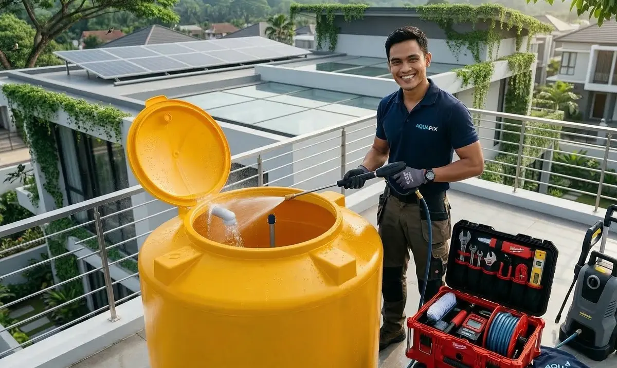 Solusi pencegahan untuk saluran air bersih yang steril dan bebas dari mampet karena kotoran yang terbawa dari Toren air, pekerjaan bergaransi.