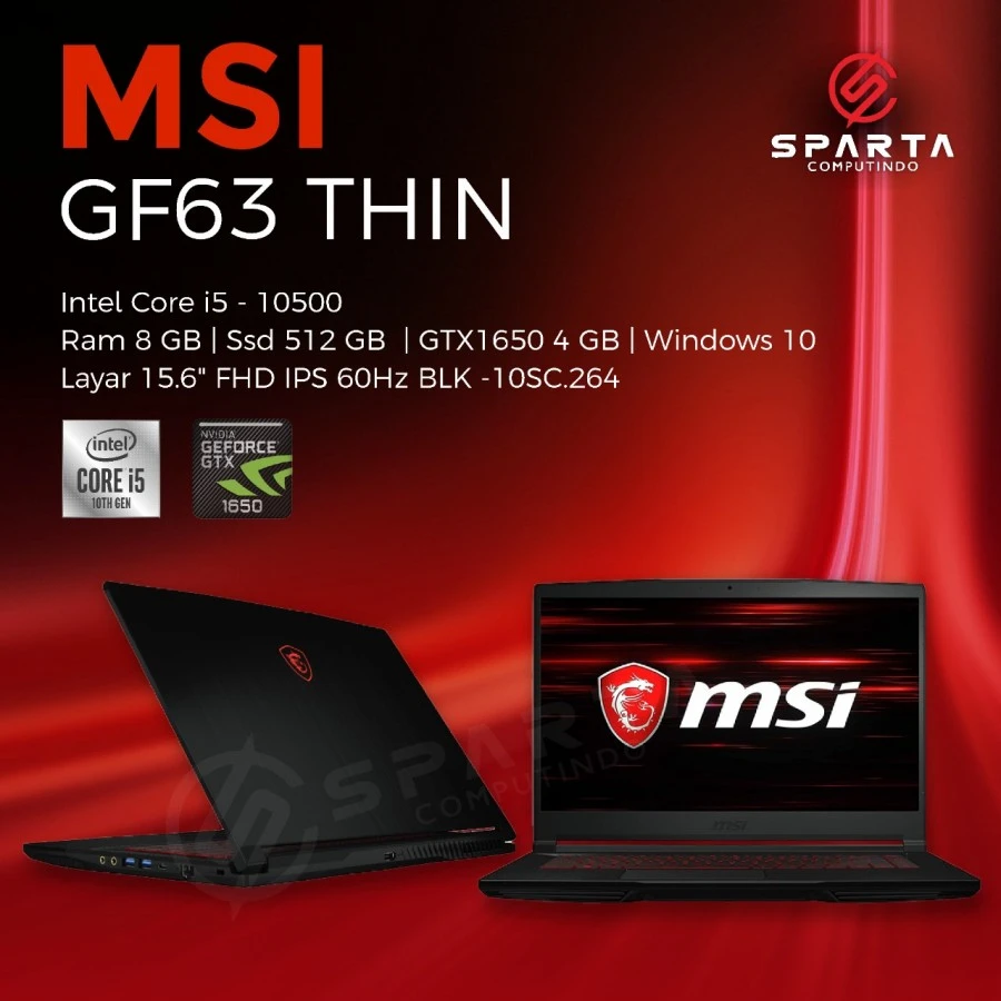 Laptop Gaming MSI GF63 Thin 10SC-264 [Core i5-10500 | Ram 8 Gb | Ssd 512 Gb | GTX1650 4 Gb | Win 10 Home | OHS 2019]